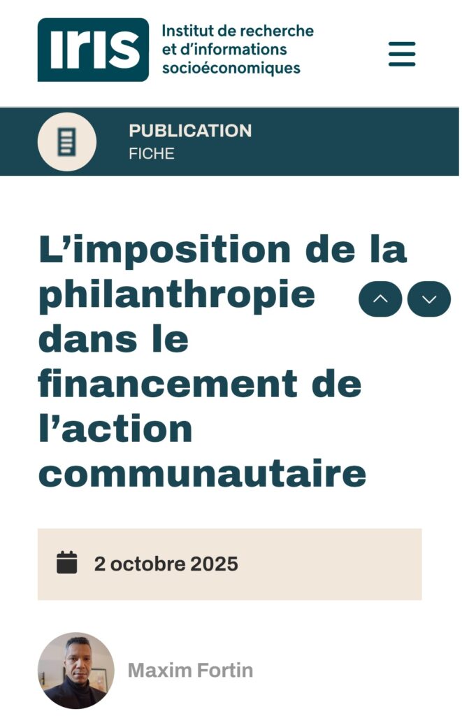 L’imposition de la philanthropie dans le financement de l’action communautaire, une publication de l’Institut de recherche et d’informations socio-économiques (IRIS)
