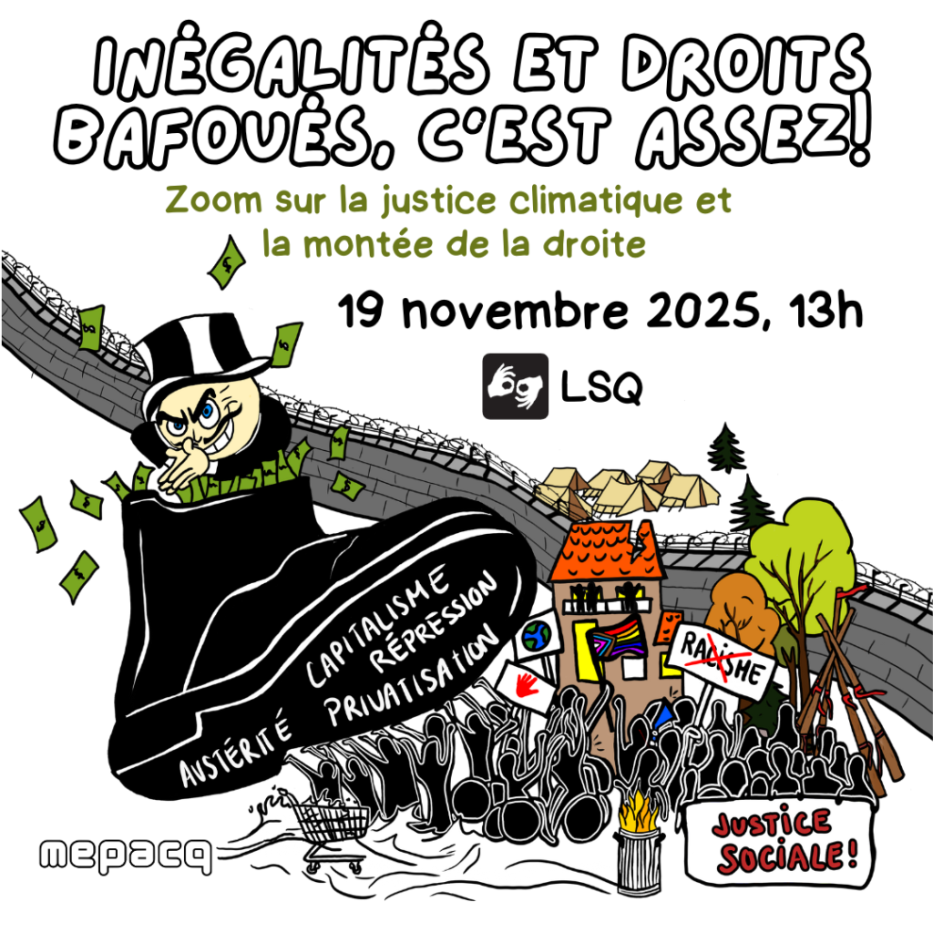 Les inégalités augmentent et les crises se multiplient et s’intensifient. Alors, qu’on devrait virer à gauche et renforcer notre filet social et nos actions pour stopper les dérèglements climatiques, nos gouvernements tournent encore plus à droite, ce qui ne fait qu’aggraver les crises actuelles. Ce sont encore les plus riches qui en profitent. Ce sont encore les personnes les plus démunies qui en subissent les conséquences.